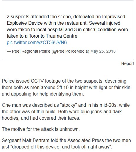 Mississauga explosion: Suspects 'detonate bomb' in restaurant