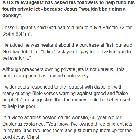 US preacher asks followers to help buy fourth private jet